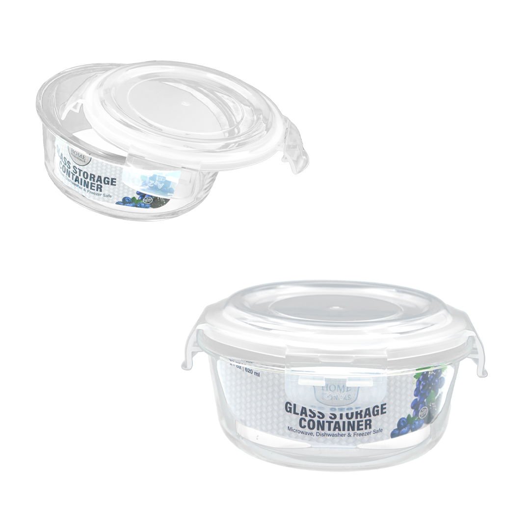BH Rnd Glass Cont Snap WH 32.1oz