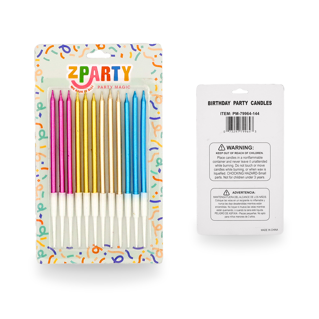 PM Party Candle Sticks 12ct 9.5cm Asst